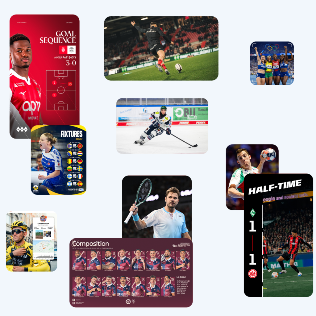 Connect your social media channels for quick publishing, your sports stats providers like Gracenote and Deltatre, or asset management platforms like Scoreplay and Canton to speed up your content creation process.